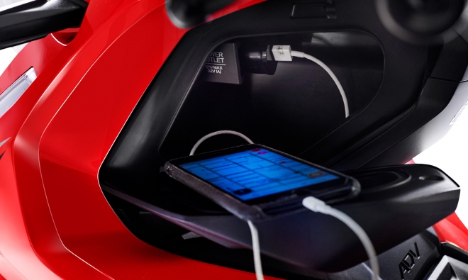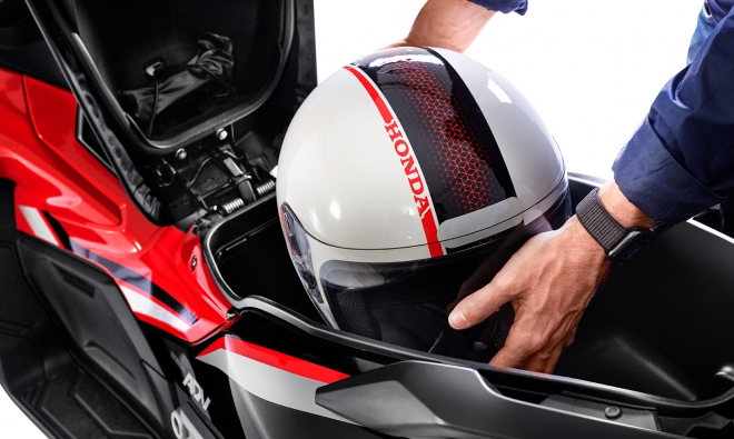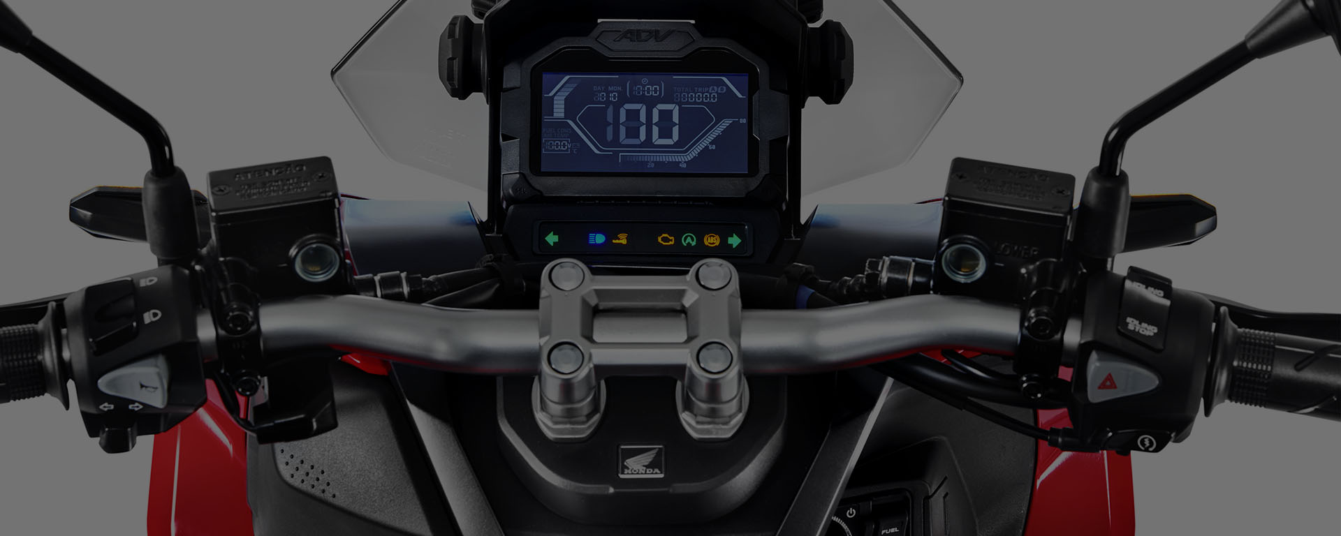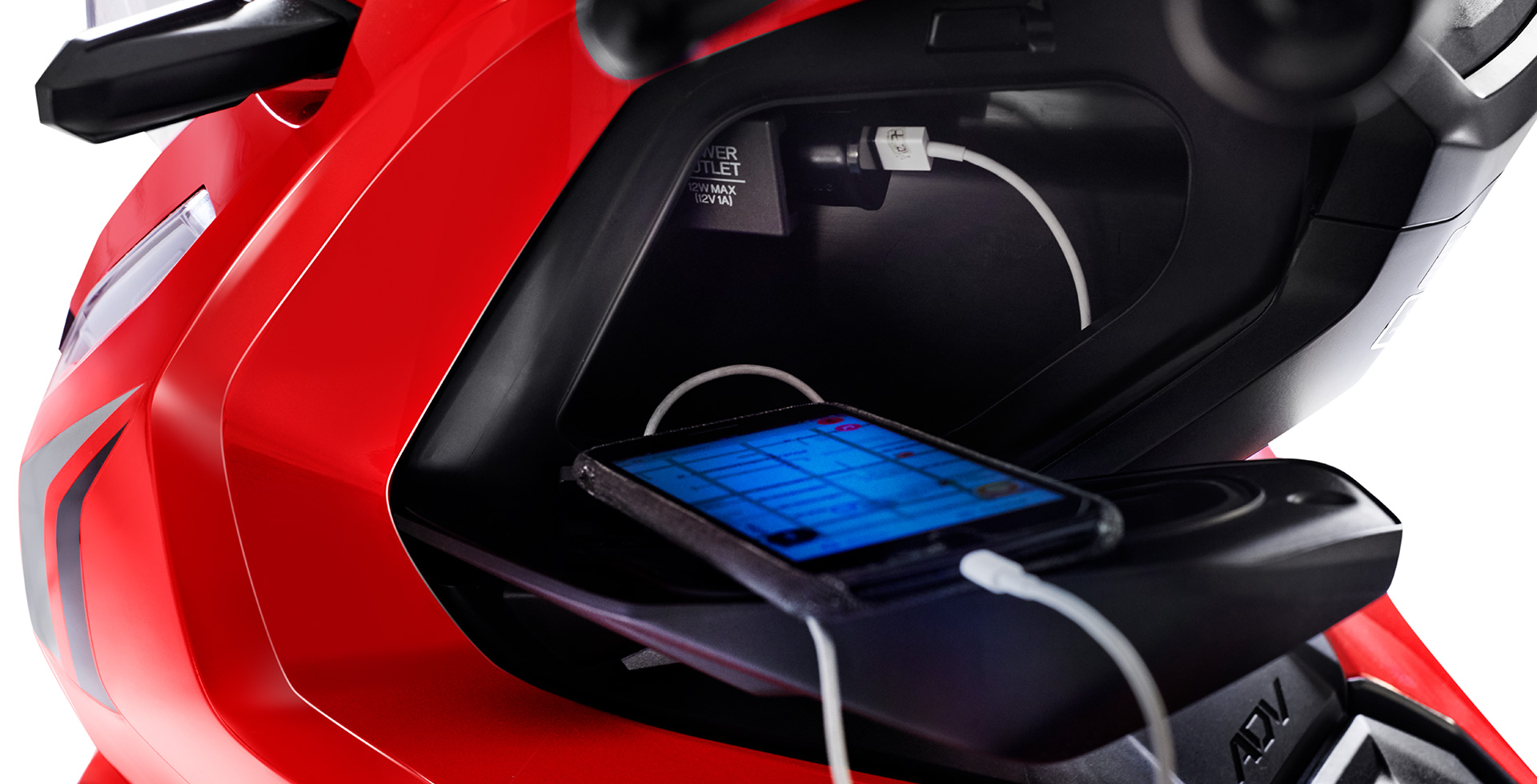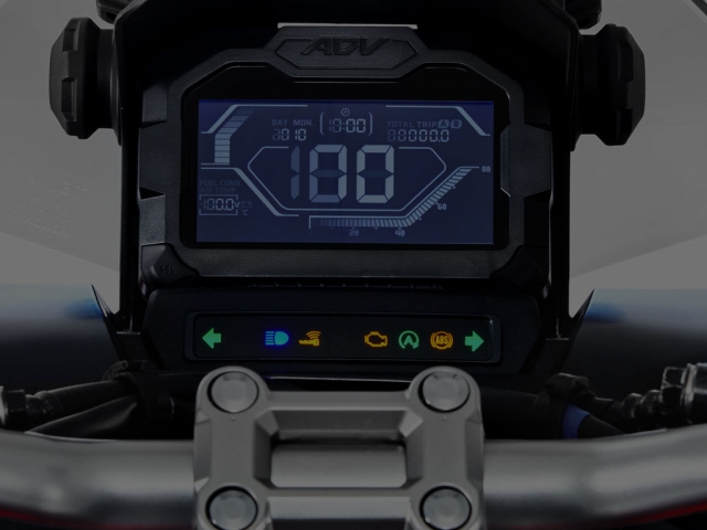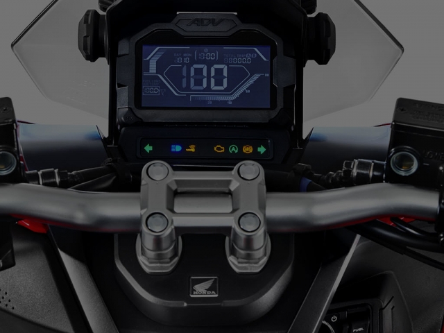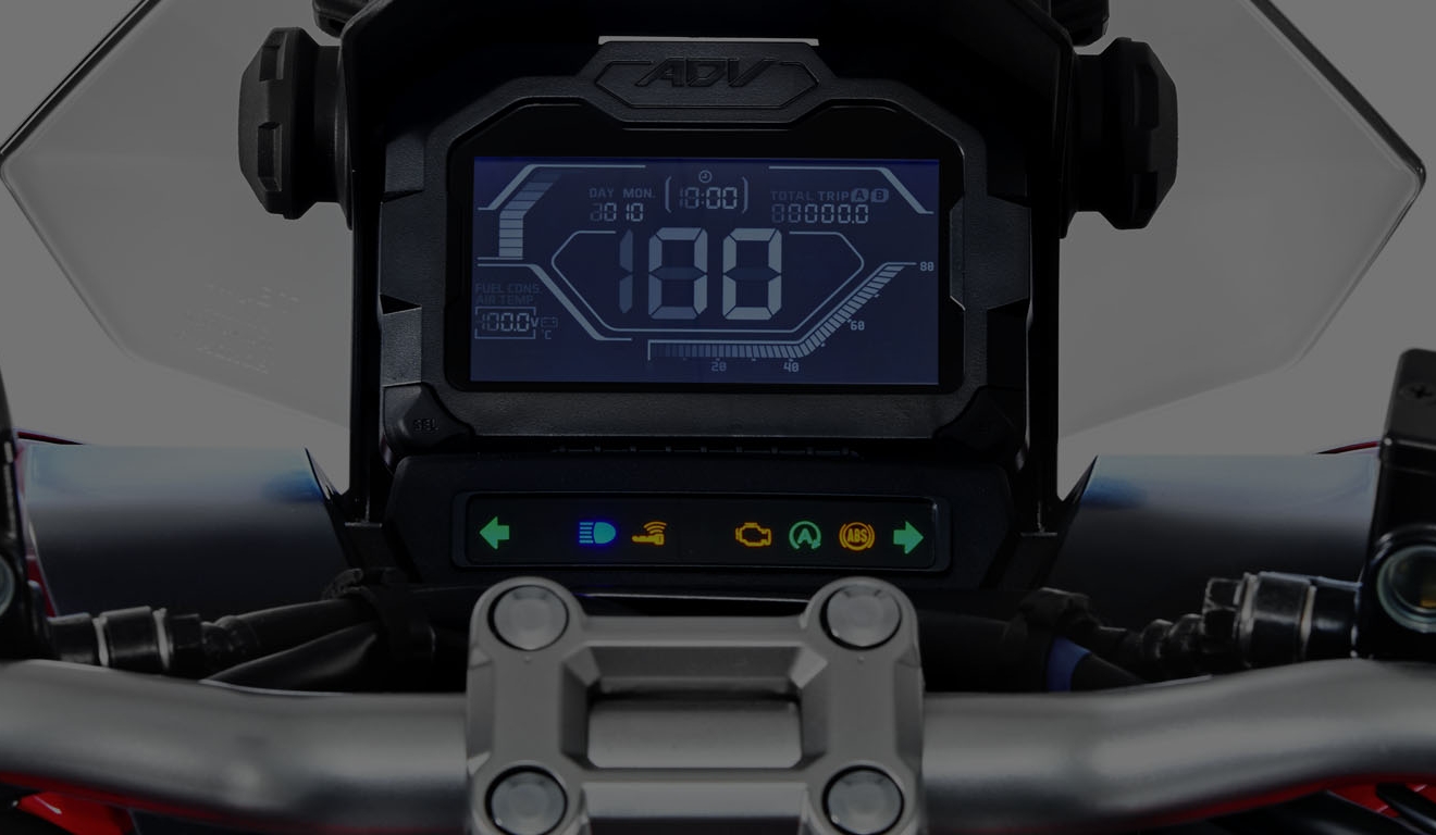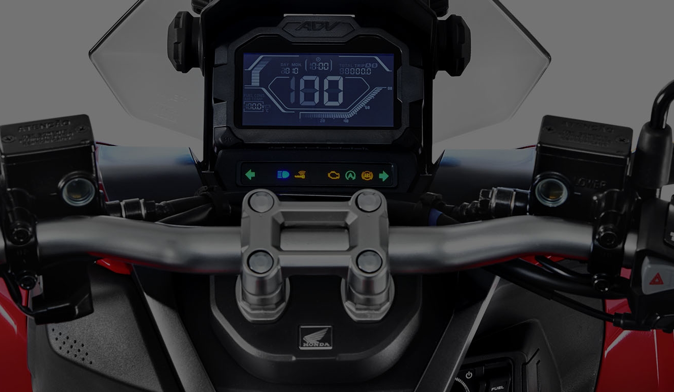 Inovadora e aventureira, a Honda ADV é a primeira scooter da categoria com suspensão a gás no Brasil. Mesmo em vias esburacadas e irregulares, garante conforto e melhor desempenho para o piloto. Além disso, também possui um maior curso de suspensão. Com a Honda ADV, você encara diversos tipos de terreno. Inspirado na X-ADV, o estilo do painel 100% digital dessa scooter combina com a sua próxima aventura. Com ele, você tem todas as informações à sua disposição: relógio, indicador de troca de óleo e nível de gasolina, velocímetro, hodômetro total e parcial, registro de consumo médio e instantâneo de combustível, temperatura ambiente e nível de carga da bateria. Muito mais praticidade no seu dia a dia. A Honda ADV possui Smart Key (chave inteligente), tecnologia que permite ligar a moto sem precisar tirar a chave do bolso. O sistema eletrônico Idling Stop da Honda ADV desliga o motor quando a scooter está parada e liga automaticamente ao acelerar. Você segue a viagem tranquilamente e ainda economiza combustível. Ideal para quem deseja um dia a dia mais prático e funcional, o porta-objetos da Honda ADV conta com uma tomada 12V para carregar o smartphone.